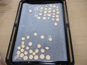 利用者様にあんこを丸めてもらい、ピンクの生地をホットプレートで焼いていただきました。