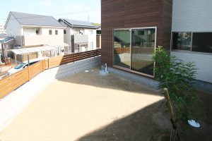 駐車スペースを余裕持って作るとどうしてもお庭が小さくなってしまう場合がありますが、こちらの場合はゆとりある敷地面積と少し高台のようになっているため駐車場とお庭を分けてしっかり確保できています♪