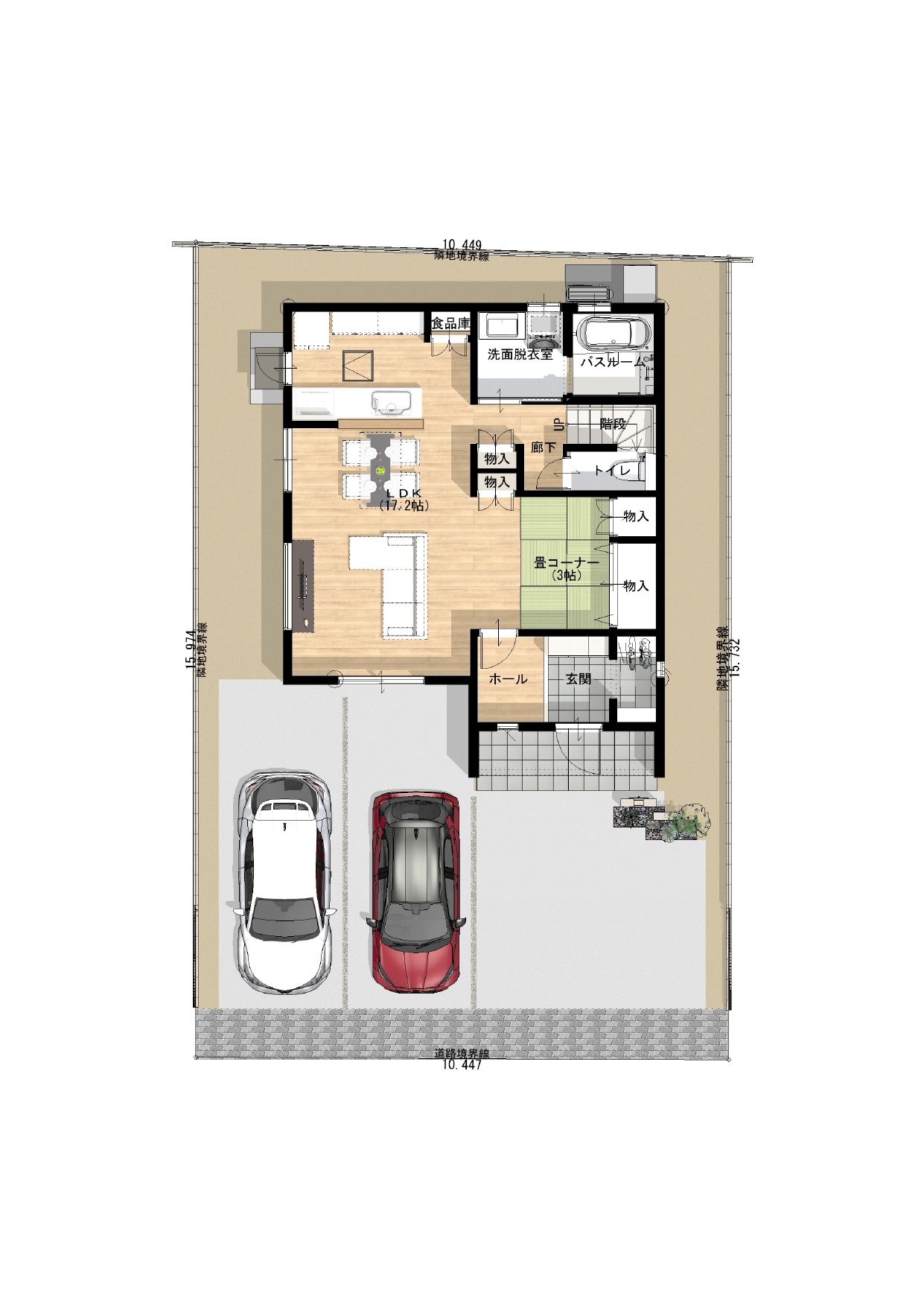 古三津Ⅳ④号地「車並列4台可 適材適所収納のいえ」